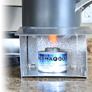 Four wicks produce a hot, consistent and reliable flame for heat and cooking emergency food.